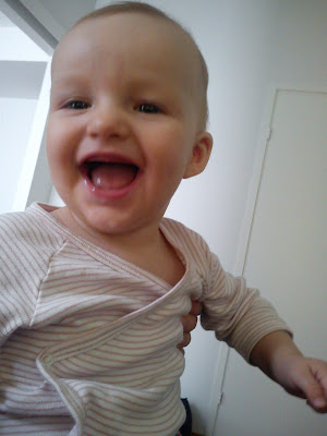 Men som sagt verkar hon inte störas avsevärt av eländet utan är en liten energisk solstråle. Hon har börjat pussas och kramas mycket och idag lärde hon sig att vinka.